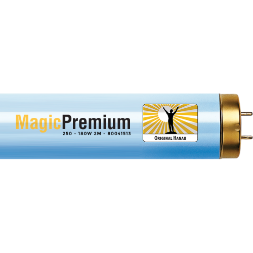 The MAGIC PREMIUM lamps feature a deluxe phosphor which emits high UVA emissions for a deeper longer lasting tan and increased UVB for rapid pigmentation.