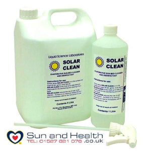 Solar Clean sunbed cleaner and disinfectant, simply spray, wipe and clean!
